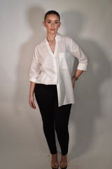 Introducing the Rhea Shirt - the perfect blend of elegance and classic style. This white shirt is expertly crafted for a truly sophisticated look. Make a statement with 100% pure cotton and timeless design. Upgrade your wardrobe with this must-have piece.